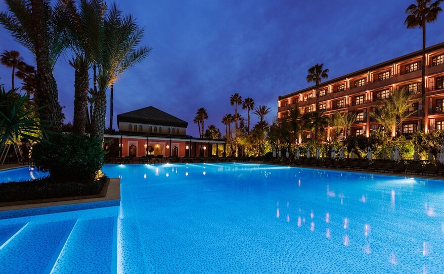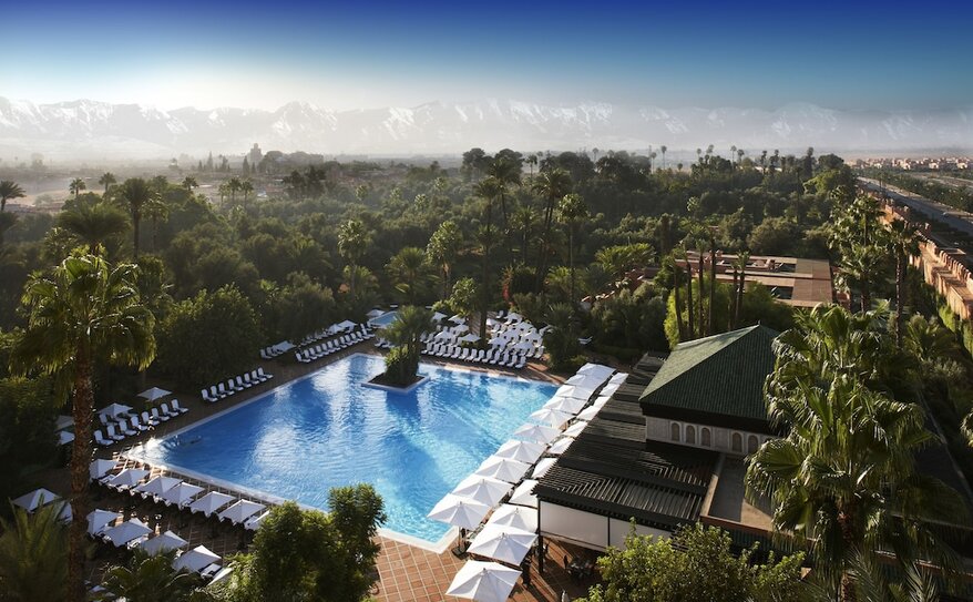 Marrakech, MoroccoLa Mamounia is an iconic luxury hotel located in Marrakech, Morocco, renowned for its stunning architecture and lush gardens. This historic property combines traditional Moroccan style with modern luxury, offering elegantly designed rooms and suites that provide a sophisticated and comfortable experience. Guests can indulge in a variety of dining options, including gourmet Moroccan and international cuisine at its acclaimed restaurants. The hotel features a lavish spa, multiple swimming pools, and beautifully landscaped gardens, perfect for relaxation. With its rich history, exquisite service, and proximity to the vibrant Medina, La Mamounia is a premier destination for travelers seeking an opulent and unforgettable stay in Marrakech.